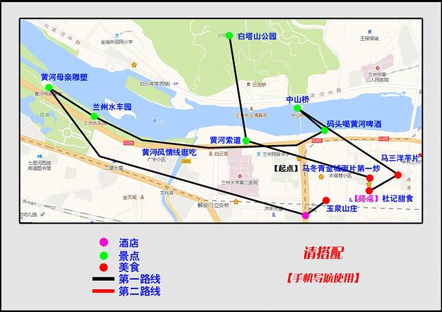 马冬青金城面片第一炒-乘 黄河 索道或步行上白塔山公园-玉泉山庄(亚欧店)-酒店稍作休息-公交至 黄河 母亲雕塑- 兰州 水车园(体验羊皮筏子漂流)- 黄河 风情线逛吃-码头喝 黄河 啤酒或三泡台- 中山 桥夜游-杜记甜食【祛除马三】