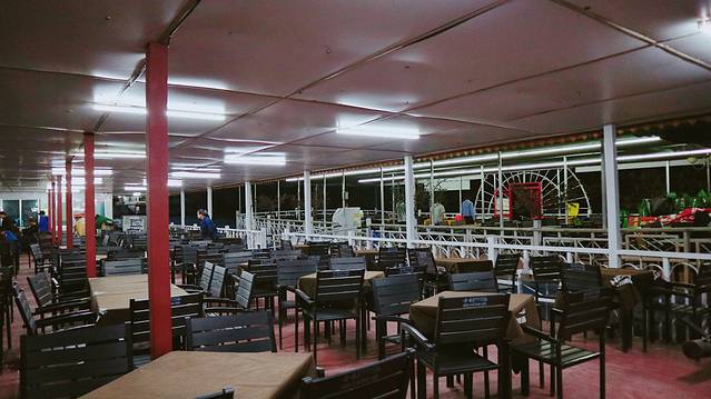 因为门口在修路,下了车没看到招牌,跟着导航找到了。店面不是很大,上下两层。一层一部分是就餐区,一部分是烧烤区。我们到的时候店里已经坐满了人,果断选择拼桌。