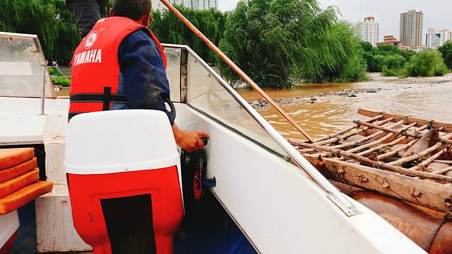 会在 黄河 索道那边由快艇将我们拉回到水车园,这一点还是不错的,既能体验羊皮筏子又能体验快艇,很是不错。