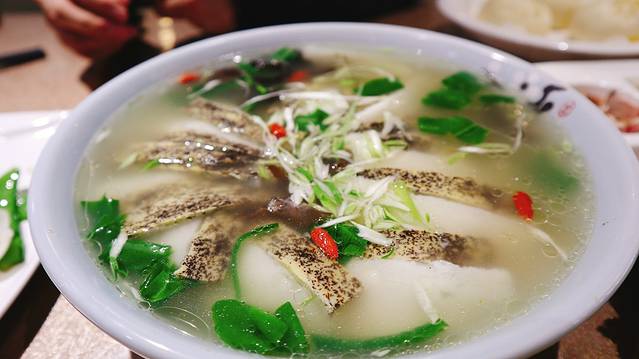 #河州发菜,68元一份,可以说是他家很有特色的菜了,发菜是一种发状藻类生物,黑色的纤细如发丝,黑黄色的部分是蛋黄和发菜,白色部分是蛋清,汤头是羊汤和鸡汤混合一起的,超级美味,口感软嫩,即是热菜又是汤羹。