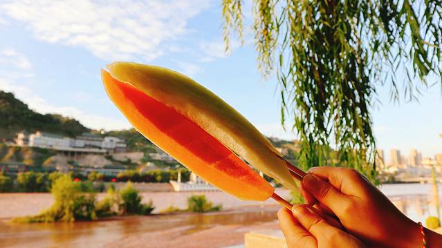 大家如果在 黄河 边溜达闲逛就会发现很多卖较为特色的美食, 比如 这个季节的白兰瓜、 哈密 瓜