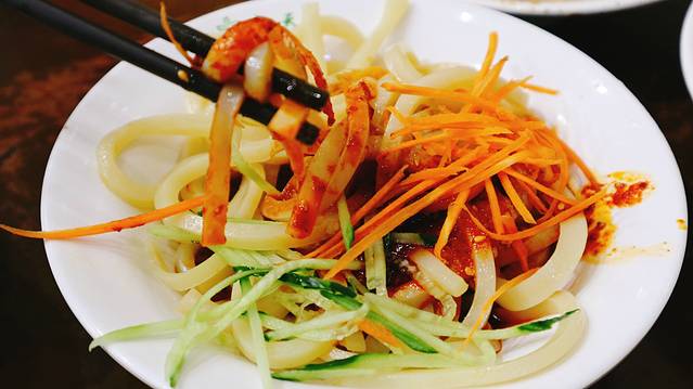 口感软弹有韧性,这个酱汁必须好评,咸辣酸3味一体,值得推荐,价格也不是很贵。