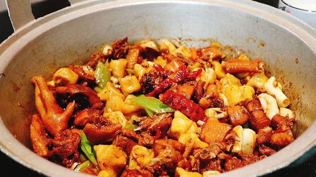 里面的鸡肉比较柴,鸡爪难脱骨。卷子的口感特别劲道而且入味。78元只有薄薄的一层,性价比不高。