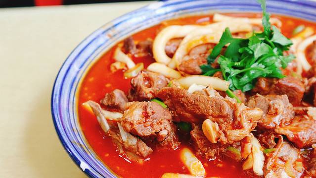 清真风味十足,还有浓郁的 西北 辣子的香味,吃起来爽滑入口,面片还挺有劲道的,最重要的是,端上桌尽早吃,这时候是最好吃,也是口感体验最完美的时候。