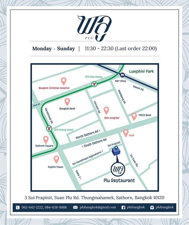 这家店在网红店汇集的是隆路附近的沙吞区,坐地铁MRT到Lumphini站或者坐轻轨BTS到Chong Nonsi站再坐出租车5分钟就能到哦。还在等什么,连泰国人都爆满的泰式餐厅,绝对值得一试哦!快点和朋友们一起来品尝一下地道的泰式美食吧!