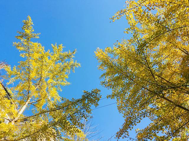 银杏大部分已经变黄了,真的很美~,随手一拍即是唯美的秋天。