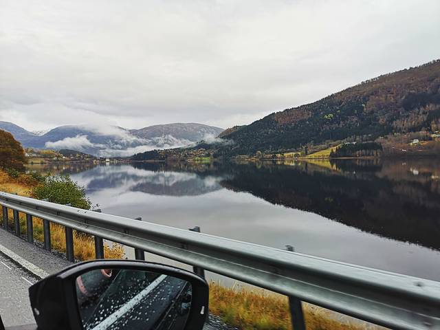 从卑尔根出发的第一站,就是鼎鼎大名的沃斯小镇,可惜一路都在下雨,我们坐在草坪上野餐的计划,也泡汤了。但是也有个意外惊喜,就是在沃斯小镇附近发现了一个瀑布,谷歌了一下名字叫Tvindefossen,虽然下着雨,但是有前一天买的防水外套,大家还是停下车去打卡拍照了。走到瀑布下面,水声轰隆隆的,很壮观。