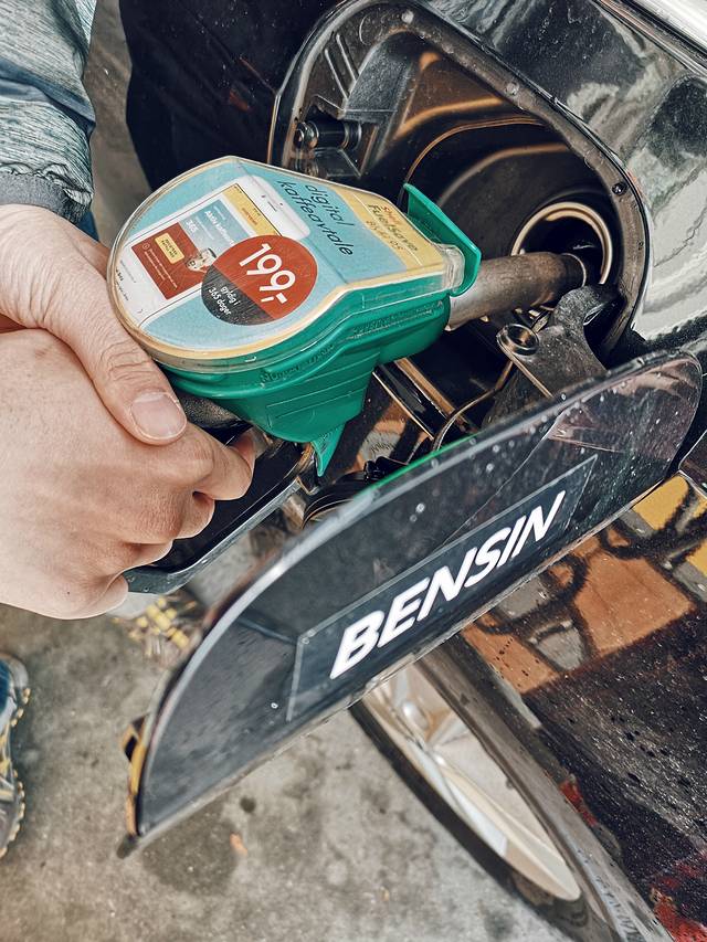 记得租车的时候,问清楚你的车子是汽油还是柴油,我们这个XC90是95汽油。到了加油站,记得不要先拔枪,而是先插卡,输入密码,然后选择你的油枪型号,付款成功再拔枪,插好以后要用手一直捏着才能加油,加满会弹开。加油站一般都是先扣掉你1000克朗预付款,然后过几天再按照实际加油费返还你。所以一定拿好收据,有个凭证。