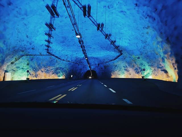 下山之后,我们就开车直奔Olden小镇了,沿途200公里。中途经过Lardal隧道,全长25Km,是世界上最长的公路隧道。主隧道是白色的光,洞穴处设计有蓝色和黄色的光,给人一种日出的印象。这些山洞可以方便司机休息,防止幽闭恐惧症。Lardal隧道还是全世界第一个设置空气处理装置的隧道,可以清除二氧化碳和空气中的灰尘。