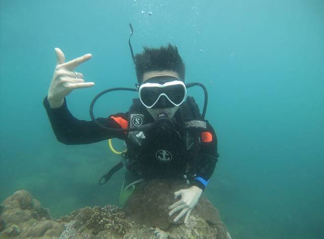 深潜的照片需要另外付钱 100/人 想要合影就要付2个人的 在水下很懵的我 上来之后一直和教练说“photo together!”教练则一直“finished.finished”后来才听小倪说 合照已经在不知不觉中拍完了 我:???