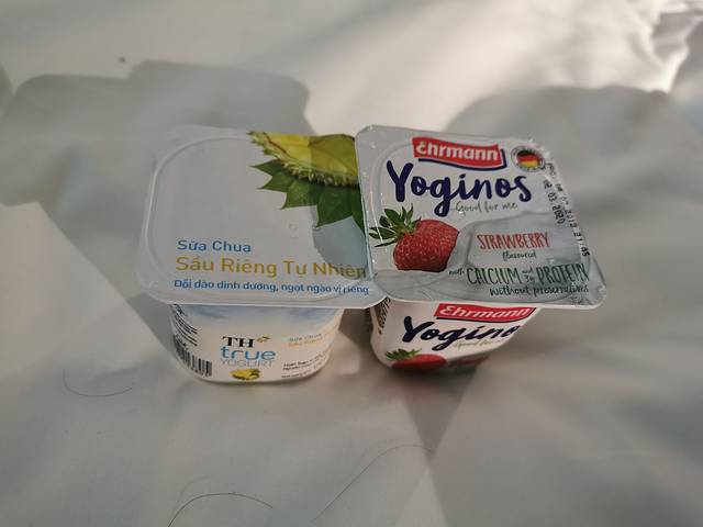 饭后来一盒酸奶 网上推荐的是这个榴莲味和另外一个牌子的草莓味 最后一天尝了 味道都不错