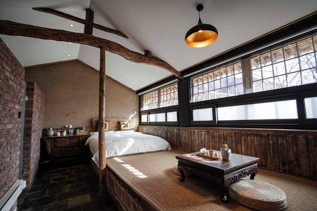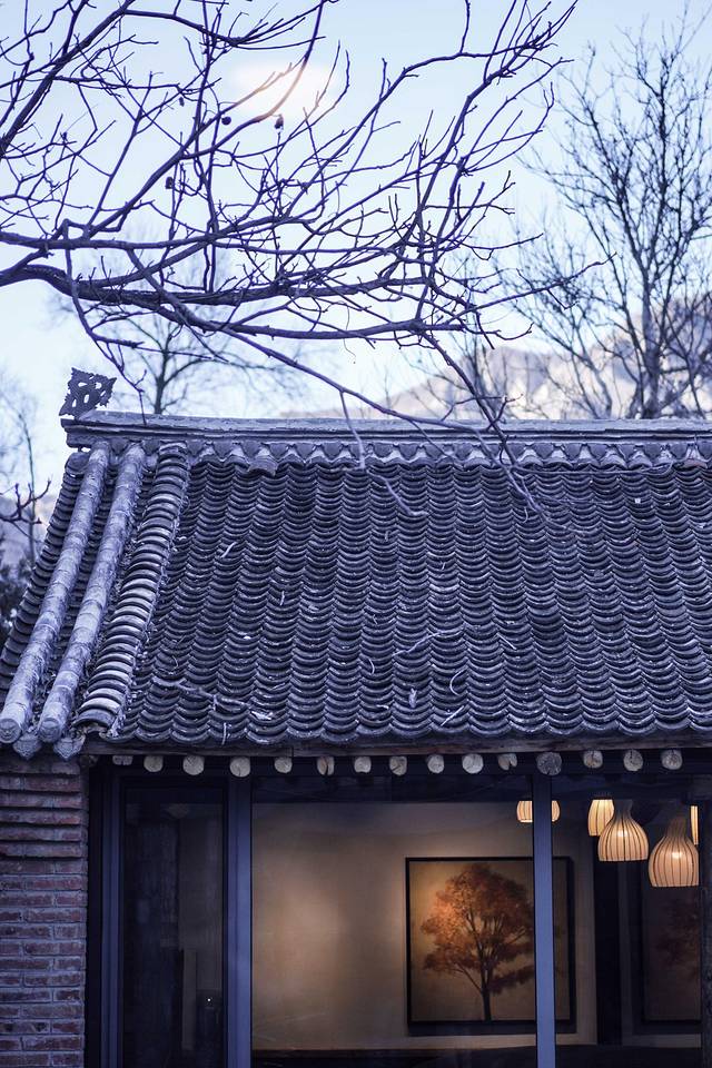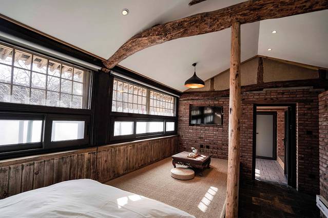 原始的外表,内部又是简奢之风,细节的细致入微给人一种返璞归真的惬意。屋顶上那根老榆木头,让历史的记忆得到延续。