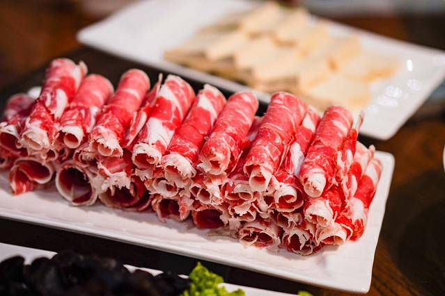 一顿火锅,一天游玩的疲惫全部驱散,大火让水沸腾,把羊肉卷放入滚水中,羊肉的香味无与伦比。