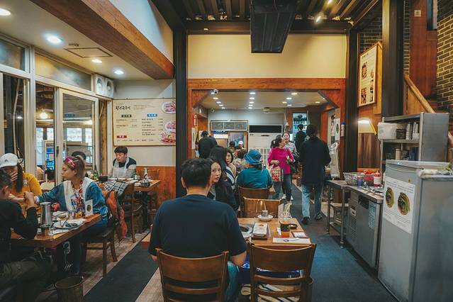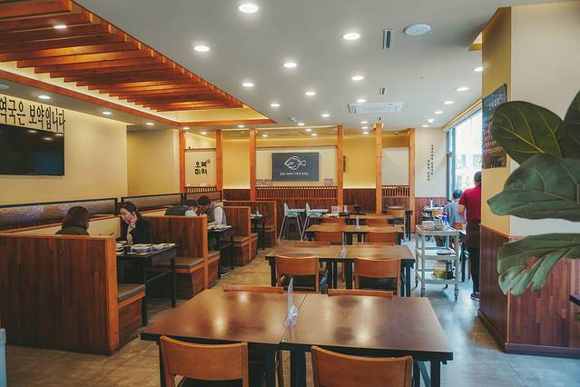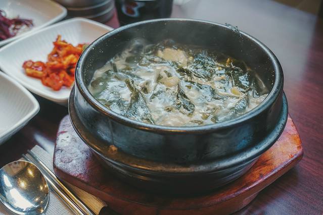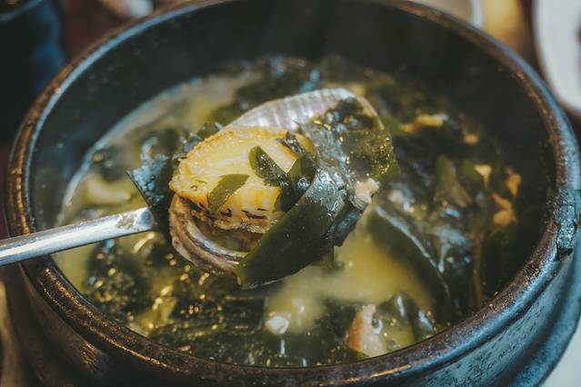 在 韩国 喝海带汤就是一正式午餐,海带汤的种类也有很多,什么鲍鱼牛肉海带汤简直听都没听过,搭配很多配菜和米饭,满满的饱足感!这家海带汤店叫五福,就在著名的商圈南浦洞附近,是当地超级有名气的老字号,幸亏我们到的时候早就过了饭点,不然又得排队等位了。