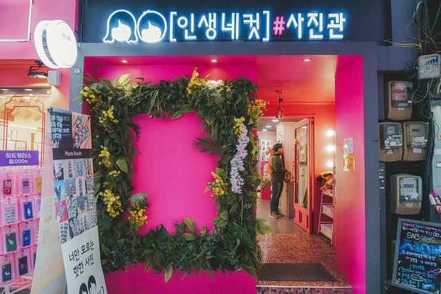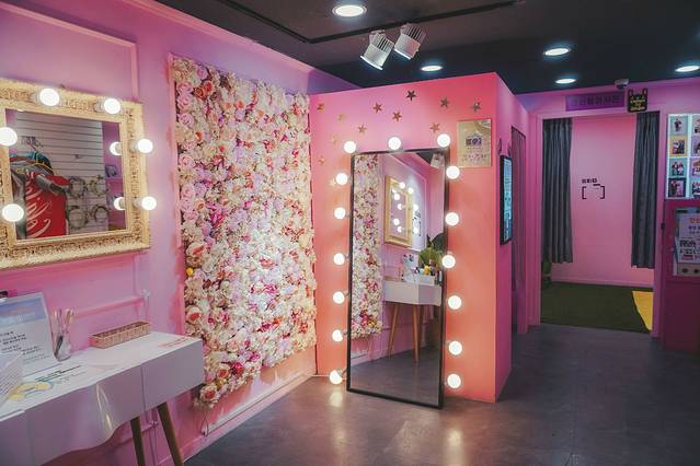 走着走着发现有家少女心十足的主题照相馆,yo姐立马双眼发光,看来在 韩国 呆久了,人也会少女心很多,迫于无奈我只能舍命陪君子了,硬着头皮跟她进去拍贴纸照。