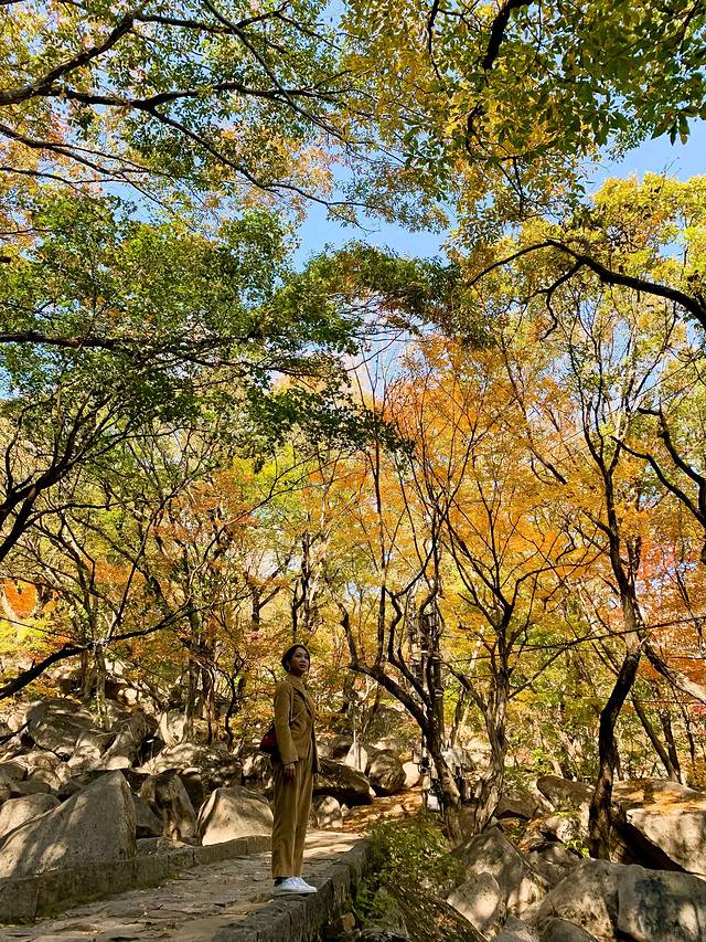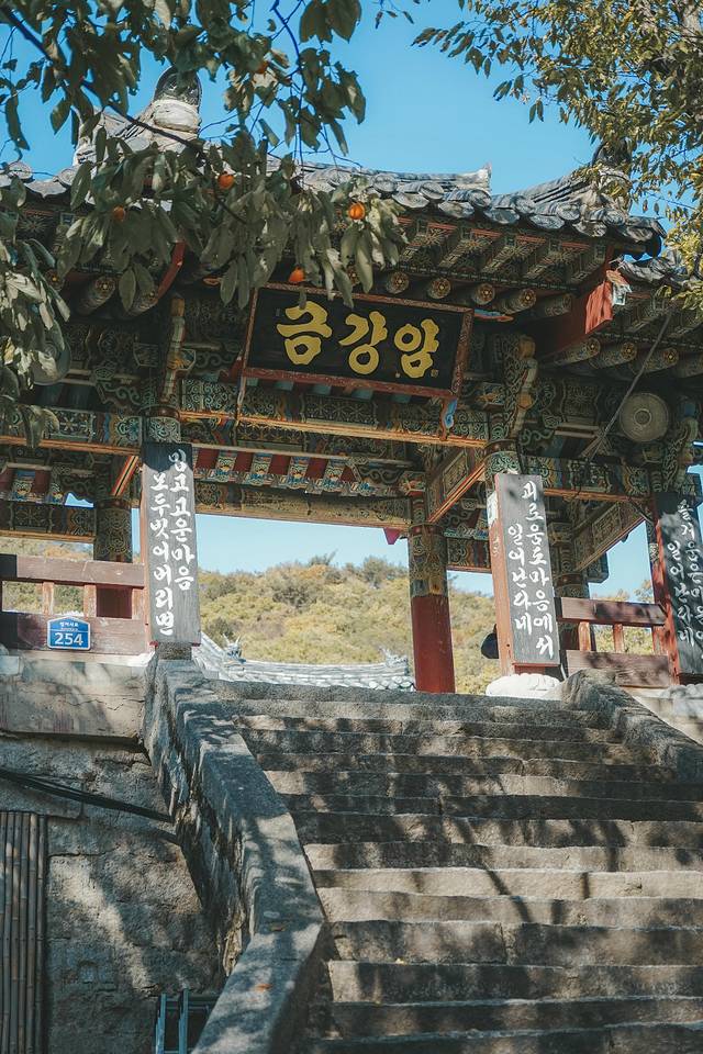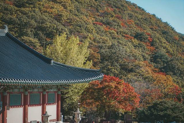 告别欧巴之前,我和yo姐刨问了很多 釜山 赏秋的好去处,欧巴给我们推荐的其中一个就是梵鱼寺了,说来也奇怪,日常里不愿意去寺庙的我,竟然头一回主动提出要去瞧瞧,毕竟 釜山 的秋天一定很漂亮!那种漫天通红的样子,光想想就觉得好看