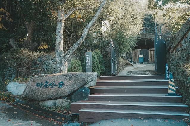 从公寓出发大约打了大半小时的车,终于到了这个叫九山治愈森林的地方,门口看着还挺低调的,确实来得都是本地人,一个游客身影都没看见,欧巴说里头有很漂亮的竹林,分好几个不同的路线走,最远的一条要步行两三个小时,还真有点小期待
