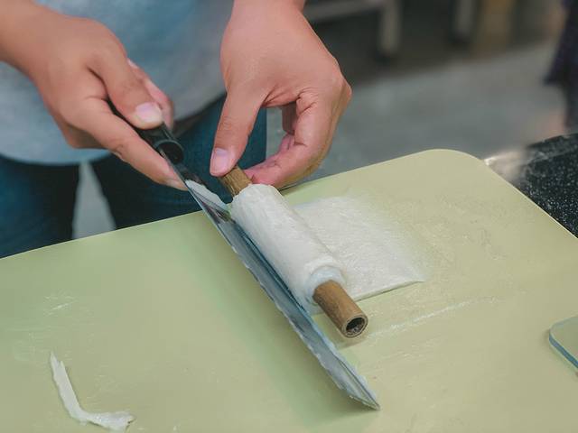 体验的地点就在影岛三进爱陌客鱼糕总店的二楼,一层是商店,可以买到现成做好的鱼糕。