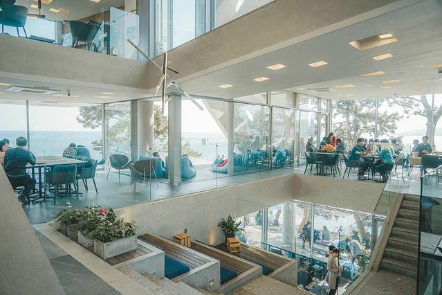饭后欧巴提议说, 机张 这边有一家非常有名的咖啡店,想带我们去看看,就在餐厅十来分钟路程,我和yo姐当然点头就好,没想到一下车我俩就开始尖叫,简直大爱这家咖啡店!