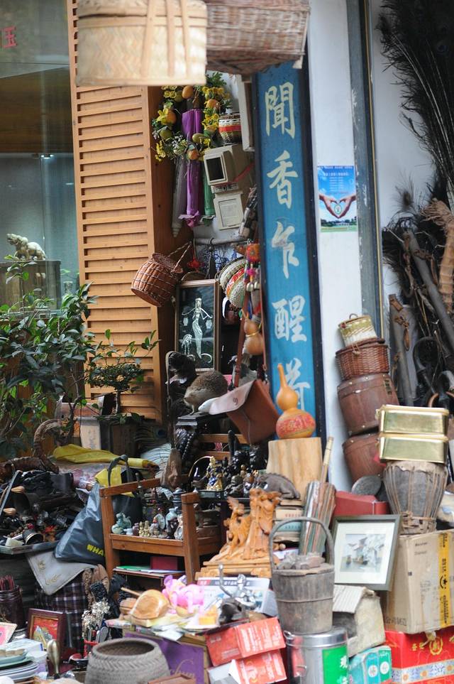 一进文化街,便感觉到了浓浓的文化氛围,有摆卖旧家具的,有卖奇石的,有卖古董的,卖根雕的,卖叶的,各式各样,应有尽有。有开店的,也有摆地摊的,琳琅满目。