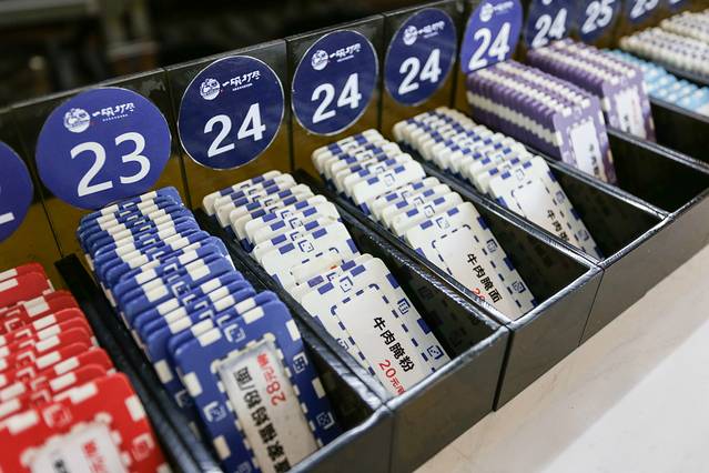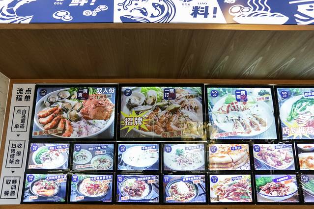 粉作为海南的一种小吃,有着快餐的性质,店面装饰干净整洁。厨房窗口的上面就是菜牌,而且都有图片辅佐,帮助第一次来吃的客人理解每个菜品的大致样子。对照着菜牌选择自己喜欢的菜品后,下面都有对应着菜品编号的号码牌,然后去前台点餐即可。点餐后每人一个号牌,档口做好后电子号牌会提示你去取餐。