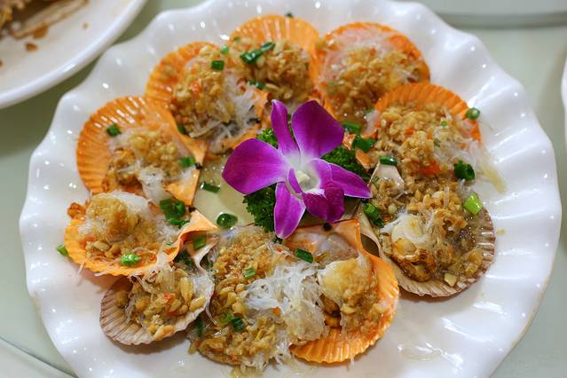 蒜蓉扇贝和蒜蓉鲍鱼,自然是要尽量锁住其背身特有的鲜味,所以不能经过太多的加工,蒜蓉的香味加上油泼,更大限度的发挥了两者本身的味道,所以无论是扇贝还是鲍鱼,都是一口一个,光盘也是最快的。