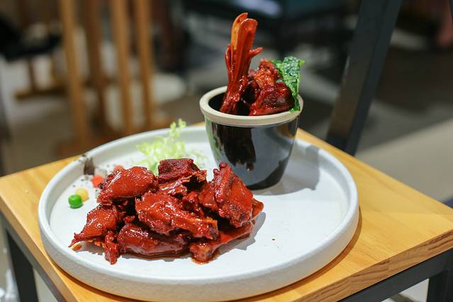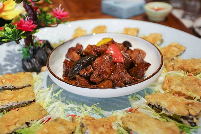 吃过老北京烤鸭,也吃过海南当地的白斩加积鸭,但是这手卷脆皮加积鸭还真是头一次见,也算是将传统海南菜与当代的口味相结合的一道菜品,吃起来外皮超级酥脆,根据自己的口味包裹上黄瓜、洋葱、菠萝,一点也不腻,都是香味。