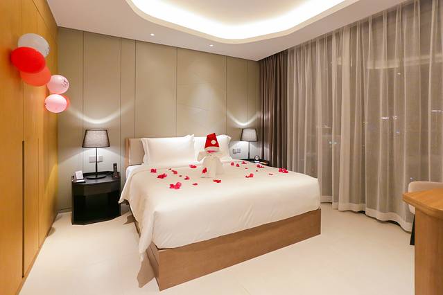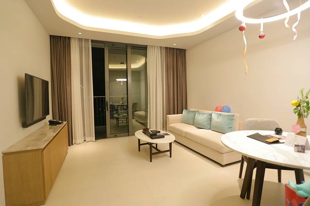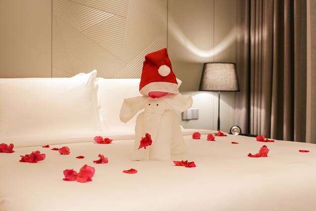 80平米的一室一厅一厨一卫,新装修的房间才用白色和米黄色的简约风,2米的大床可容纳一家三口。入住的时候刚好是12月初,酒店已经被装饰成了圣诞 style 酒店工作人员精心准备的“大象”也戴上了可爱的圣诞帽,给这次入住增添了不少惊喜元素。