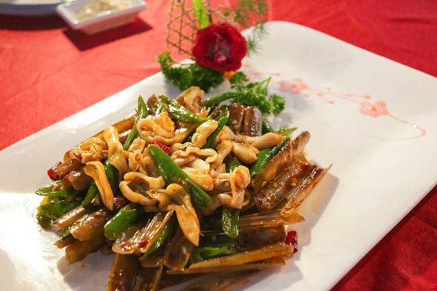 辣炒竹蛏是将传统的川菜做法与海鲜完美结合,又香又辣的口味实在是太下饭,本身竹蛏的肉质就非常肥美,吃起来有弹性,特别棒。