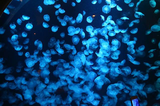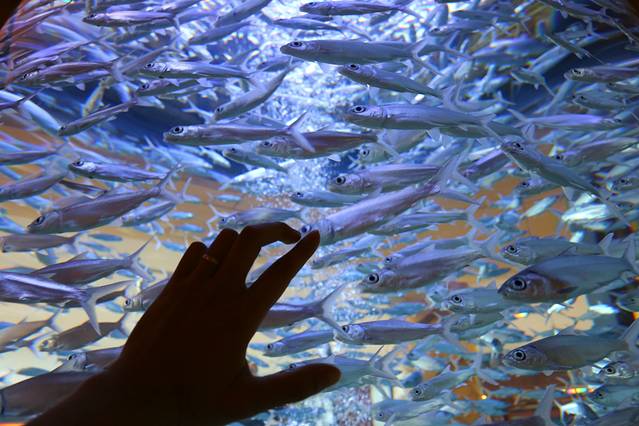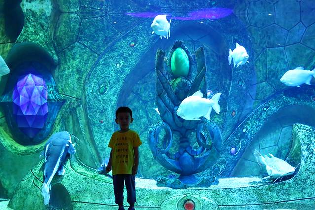 从认识的水母到不认识的各种五彩斑斓的热带鱼,走在这里仿佛忘记了时间,忘记了生活中和工作中的烦恼,只想自己也变成一条欢快的鱼儿,徜徉在这蓝色的海水之中。