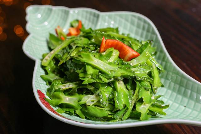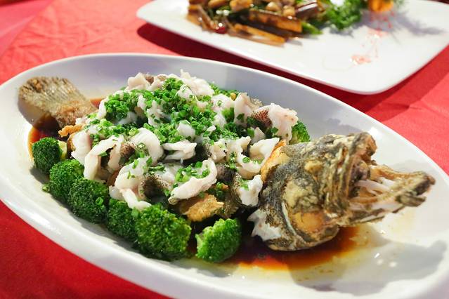都说三亚这边的石斑鱼非常鲜,所以我们也要了一条清蒸石斑鱼,鱼肉被片作小片,所以在烹制的过程中充分的与调味料相结合,鱼肉吃起来非常入味,刚开始我还担心会不会很腥,后来就完全打消了这个顾虑,大厨给石斑鱼做的造型也是蛮不错的,石斑鱼还有个好处就是鱼刺不算多,没有乱刺,吃起来比较容易些。