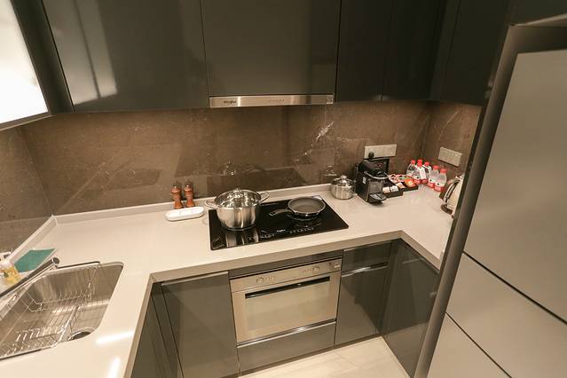 最可圈可点的便是厨房,采用惠而浦厨房设备,还配备了烤箱、电饭煲、各种炒锅以及做饭会用到的厨具,真的是太贴心了有没有。早晨打开窗帘,三亚湾的无边海景就能映入眼帘,楼下有超市、夜市,所以生活配备也算很齐全了。