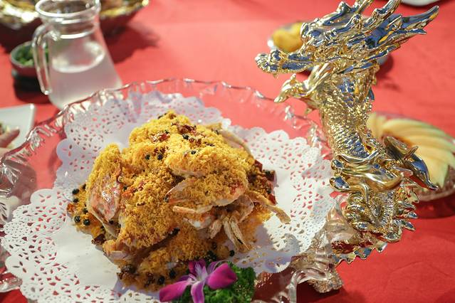 既然叫做东海龙宫,因此很多菜品的造型以及摆盘自然离不开龙这个元素,泰国富贵虾的个头真的是超级大,同行的小伙伴都说没见过如此之大的皮皮虾,采用椒盐口味,外皮酥脆而且里面的虾肉入味,完全停不下来的节奏。