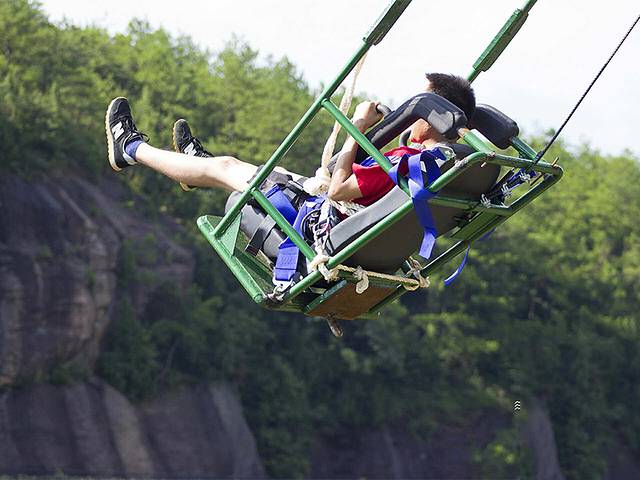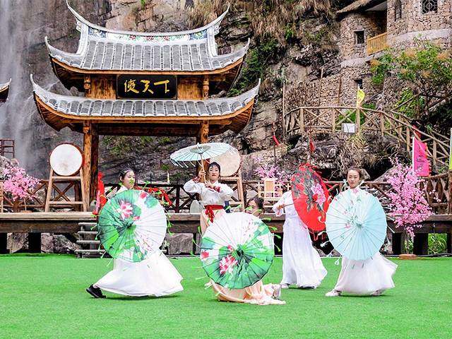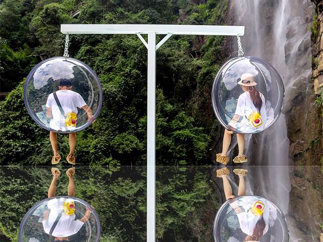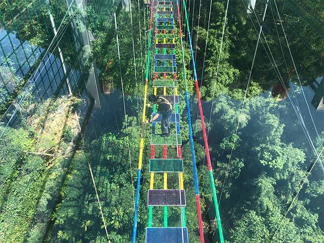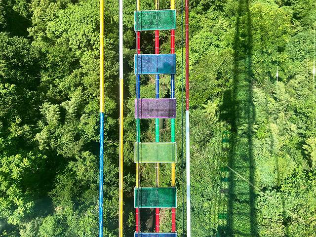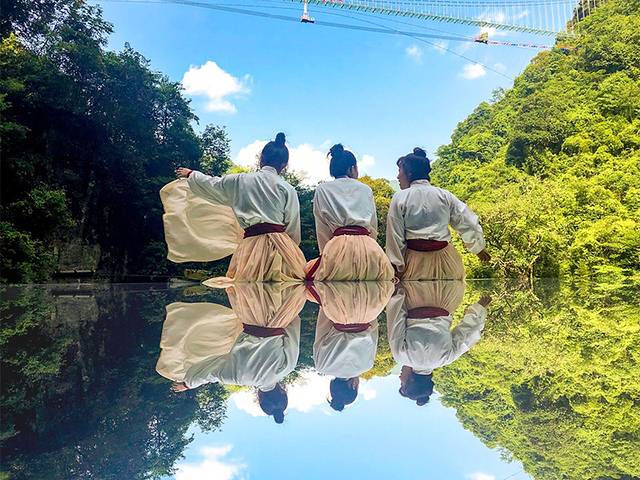 走在玻璃天桥,如同空中漫步犹如一幅“人在天空走,景在脚下游”的唯美画卷!透过玻璃还可看到桥下层其他游客挑战极限高空项目,万亩绿林、武林广场、桃坪古寨、剑客山庄......