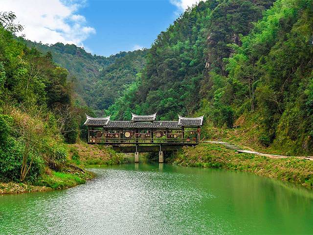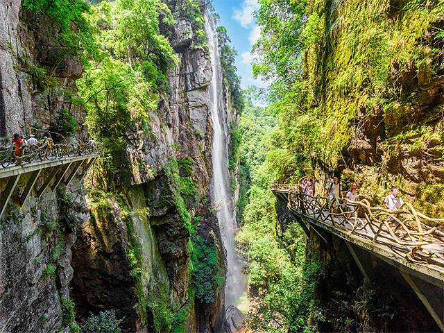 鸿图霸业谈笑间,不胜人生一场醉,峡谷幽深,栈道延绵,途中的山泉水叮咚作响,迎着一路的阳光漫步,也沾上了悠闲自得的气韵