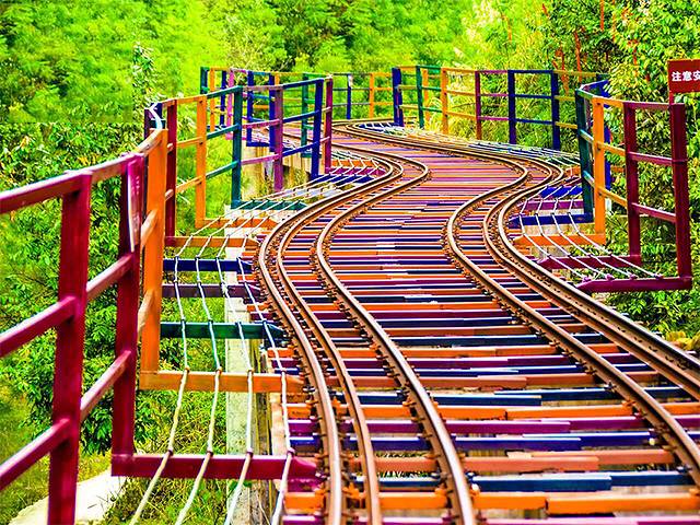 我走过山时,山不说话,我路过海时,海不说话,只有小火车滴滴答,伴我仗剑走天涯~丛林火车是侠天下的人气项目之一,每天的汽笛声叫醒这片密林。缓缓地行驶在这虹色的铁轨上,欢笑嬉闹声不绝于耳,