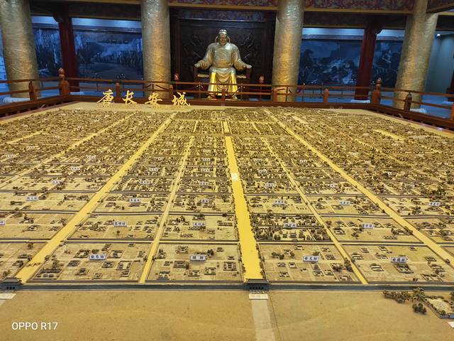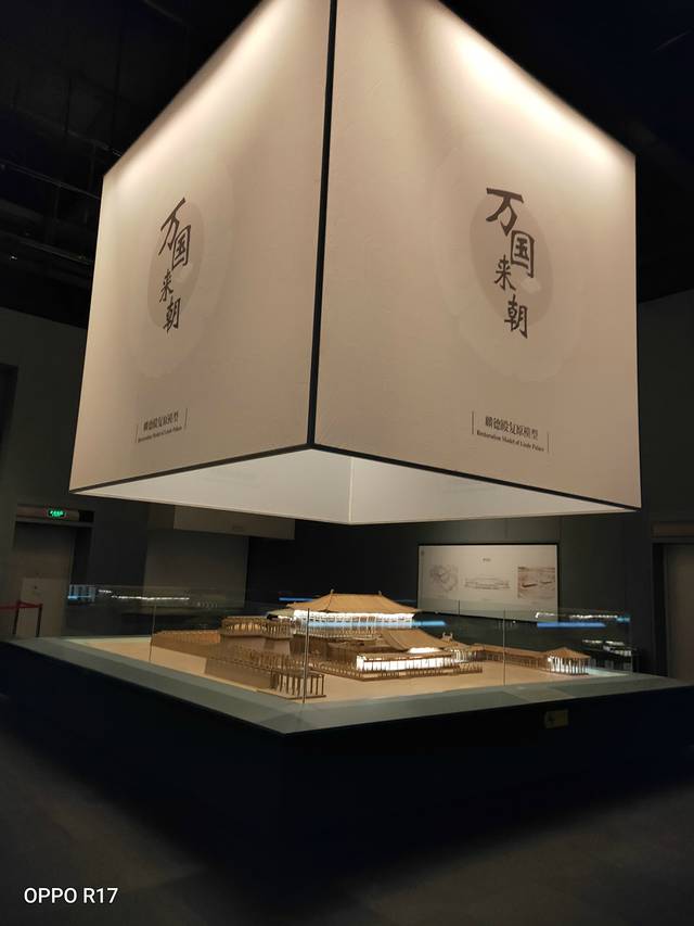 在金水桥入口,先参观了遗址博物馆。出来后再看大明宫的微缩景观,站在栈道上,可以俯视整个大明宫的缩小版。