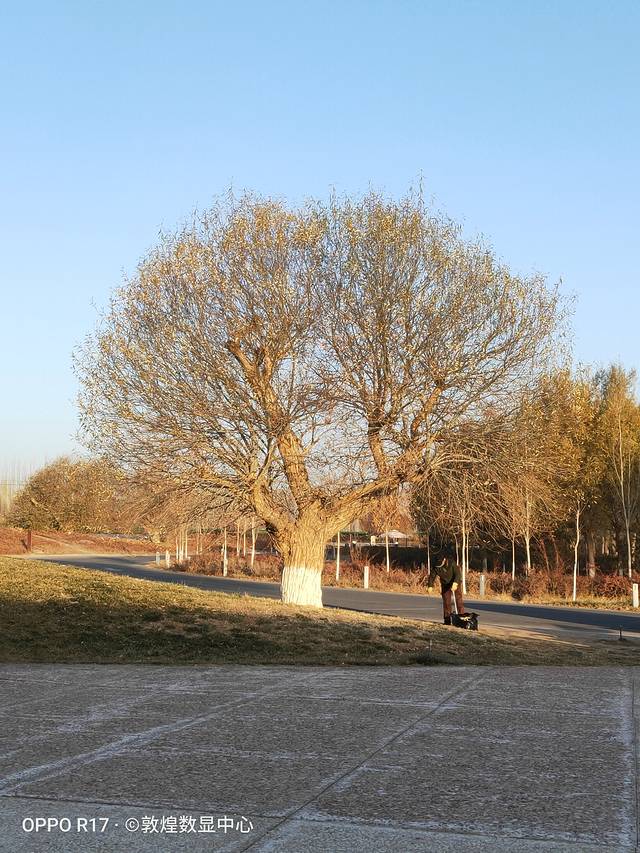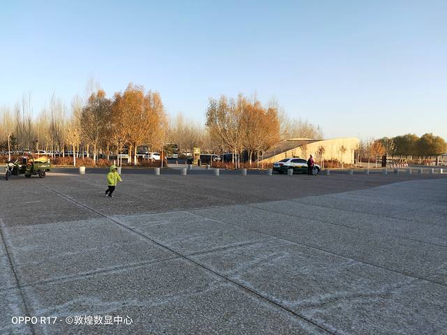 上午8点的敦煌,天还没亮,小学生们已经包得妥妥的,在打闹嬉戏中上学了。上班的人们,也穿梭在晨早的马路中