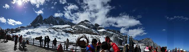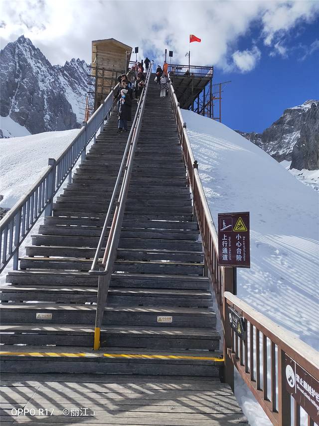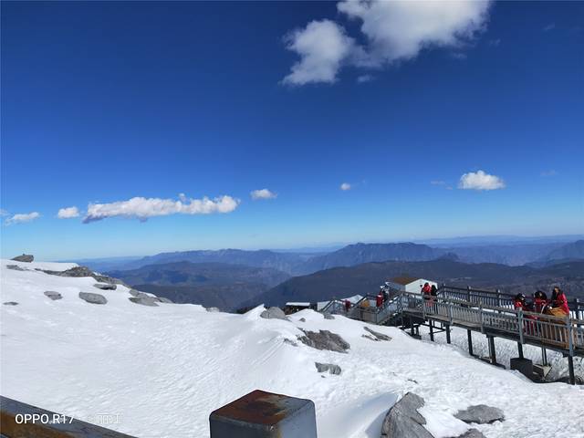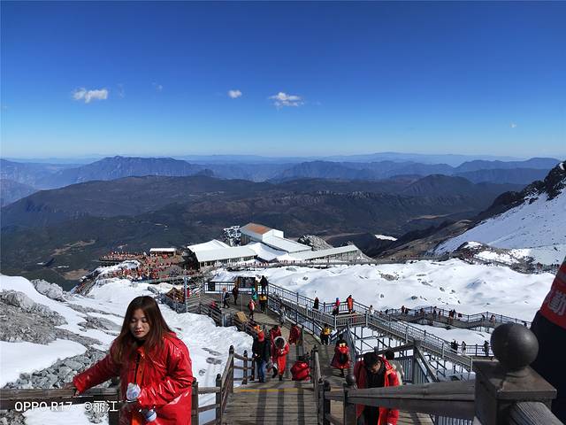 14点,滇菌王酒店门口,景区的车来接,我们客栈6人,一车大约十几人,大家年龄上相仿,都有共同语言,跟司机协商好了,18点来接我们。买了168元门票就进入景区了。会有景区解说带你走到玻璃桥,之后就自由活动了,也可以看一下《雪山情缘》,我们十几人三人去看。