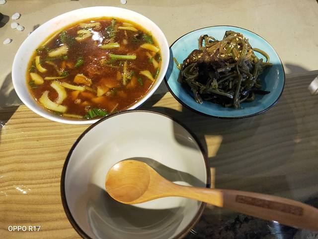 从陕西一直吃面食(中间有吃过一次米饭套餐,专门去找的),在敦煌比较好,早餐有粥,到张掖,兰州,吃两次兰州拉面,两次胃肠都不好,(改吃面包)到丽江继续吃面线,以前,不挑食的我,现在一看 “面” 就难受!好久没吃这么好吃的家乡菜了,还有香喷喷的白米饭!!!