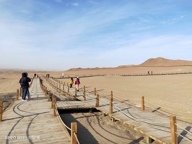 路上,接机的表明身份,是酒店的旅游销售部的娟,并向我们推销了线路。由于很巧合,我们都是隔天10点到莫高窟,下午到鸣沙山的,所以娟跟我们说,包一辆四人的车,去这两个地方,一天150元。带着个小孩子也方便。又给我们推销了西线一日行的线路,车费76元,(门票,午餐自费)如果晚上再观看个丝路花雨,那这76元就不用付了,当是赠送。从11月6日,敦煌的演出就基本关了,剩下丝路花雨,门票238元。我是不看这些的,所以我跟她说考虑好给她回信息。