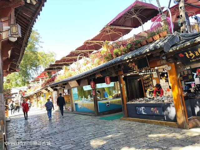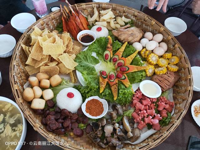 想来有空,品尝丽江美食。小吃是一大片,到处是卖小吃的地方,这些天品尝了鲜花饼,还可以哦。看到有芝士焗榴莲,一小摄28元,放弃。四片豆腐25元,放弃……就这样,没有吃小吃。回客栈休息好。