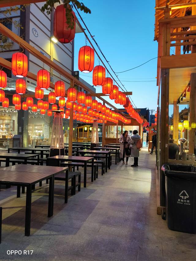 有卖肉夹馍的,有卖烤串的,有卖面,但是,很多的商家关了。因为淡季