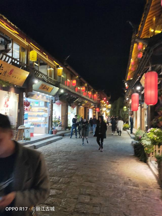 和陈小姐她们约在古城碰面游玩一圈。碰到广场的篝火活动,我们几人也上去在跳纳西舞。