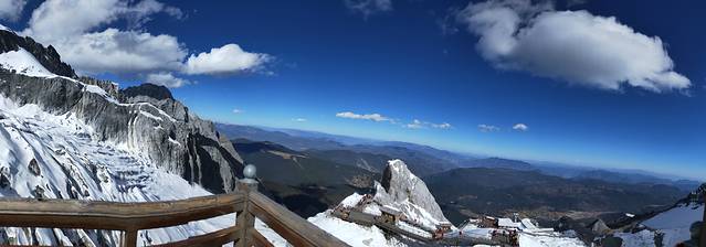 天蓝、雪白、衣红,太阳暖和,19度的天气对很照顾。全景,也只能拍一部分,不能拍全部。