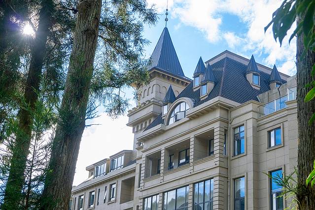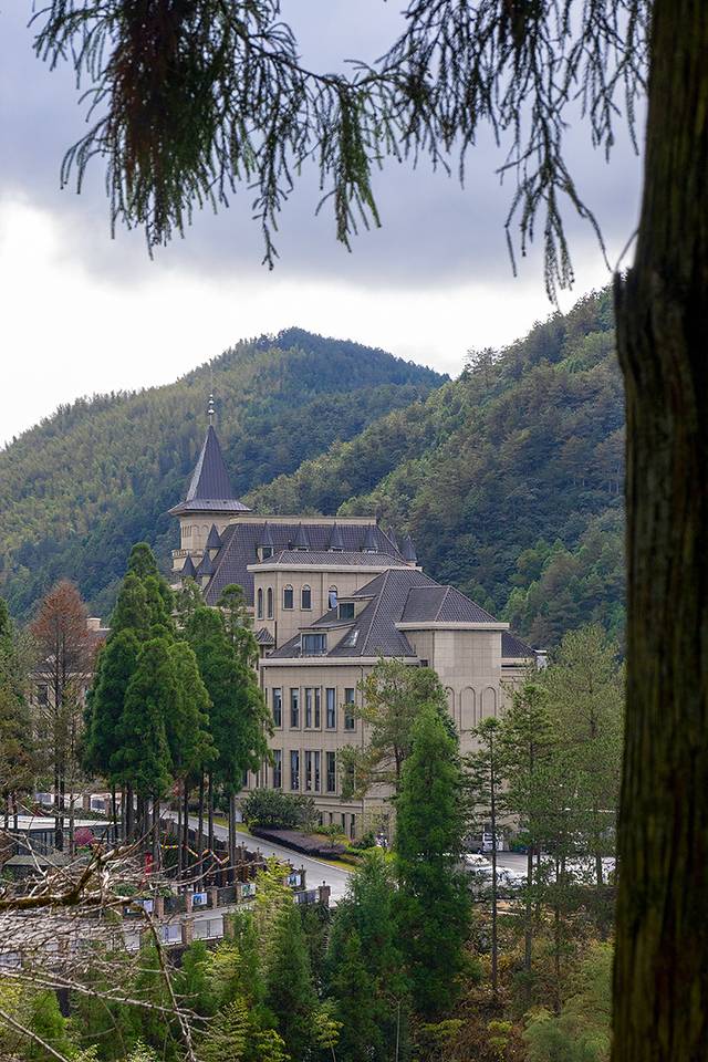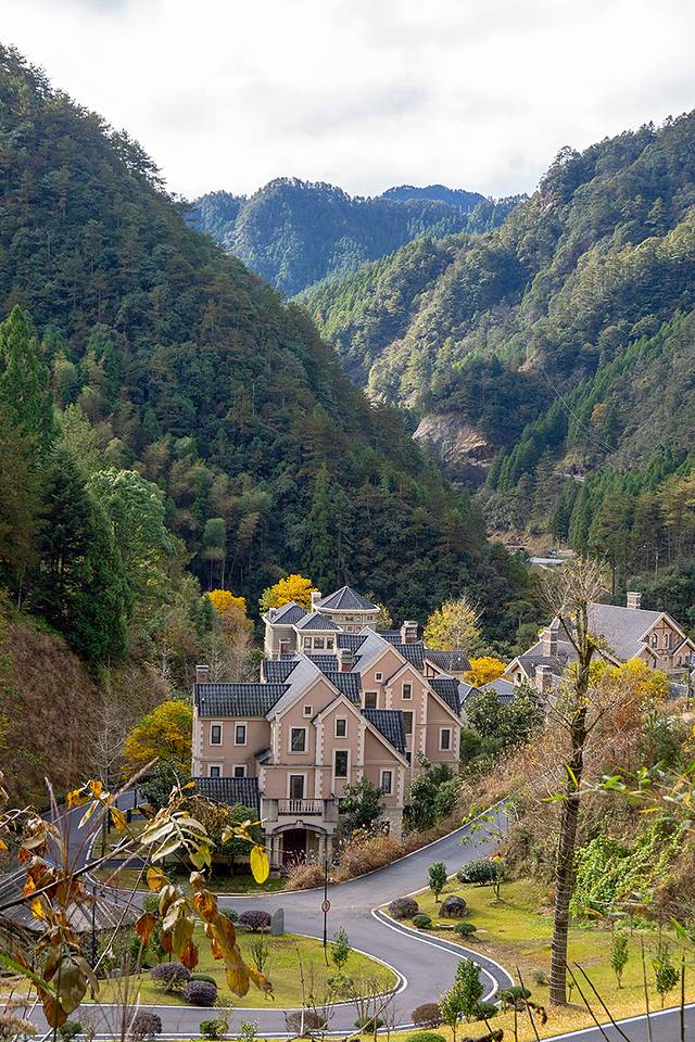 文成有个森林度假好处去:毗邻4A级景区铜铃山的天鹅堡小镇,城堡式的度假酒店掩映在茂密的森林植被中,加上雨后初霁,呼吸着新鲜的空气,欣赏着优美的风景,还真有几分身处阿尔卑斯地区的感觉。整座天鹅堡小镇,除了度假酒店外,还有度假别墅、公寓、室内滑雪场、温泉等度假设施和项目,可惜我们时间紧张没来得及去滑雪,据说是浙南地区最大的室内滑雪场,一年四季都可以玩滑雪呢,下次有机会再来吧。