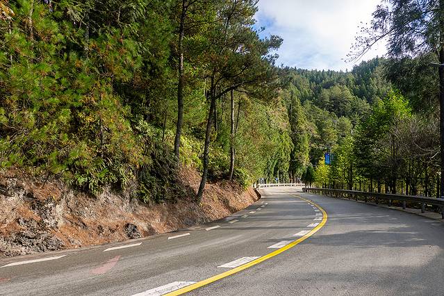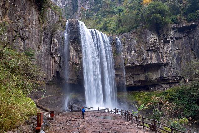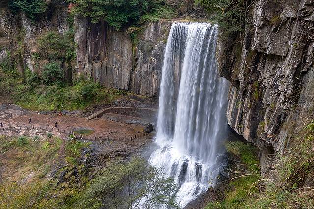 上到山顶,又是一段平坦的游步道,远远看到一座造型别致的观瀑亭屹立在山坡上,亭子后方正是垂直落差最大的头漈。这样的画面,很有中国风的感觉,又好似身处在水墨画中,令人如痴如醉,久久不肯离去。