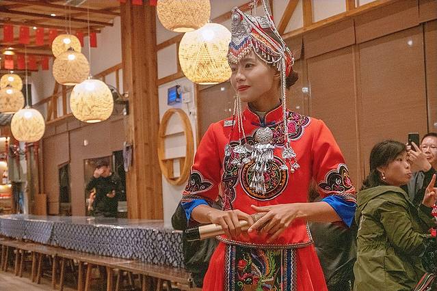 除了美食,更吸引人的是畬族帅气小伙和漂亮姑娘的即兴表演。他们或对山歌,或表演乐器,虽然没有经过专业训练,却个个多才多艺。最令人惊奇的是,小伙子用一片树叶就能吹出动人的曲子来,据说这也是畬族人的特色才艺,很厉害了。