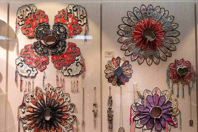 畲族厅。温州也有少数民族畲族,展厅内详尽地展示了丰富的畲族文化,包括特色服饰、婚嫁银饰、生活用具等等。作为古老的南方游耕民族,畲族的服装服饰色彩艳丽,特别好看。如今日常生活中的畲族已与汉族无异,民族特色文化也只有在博物馆里才能看到了。
