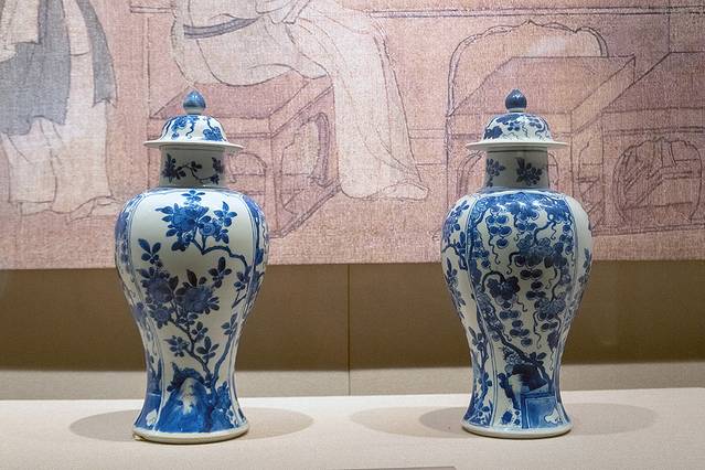 清青花葡萄花卉纹将军罐,为清朝早期的御窑青花瓷,釉水肥润,相当精美。此外还有晚唐青釉双复系瓷盘口壶等馆藏珍品。